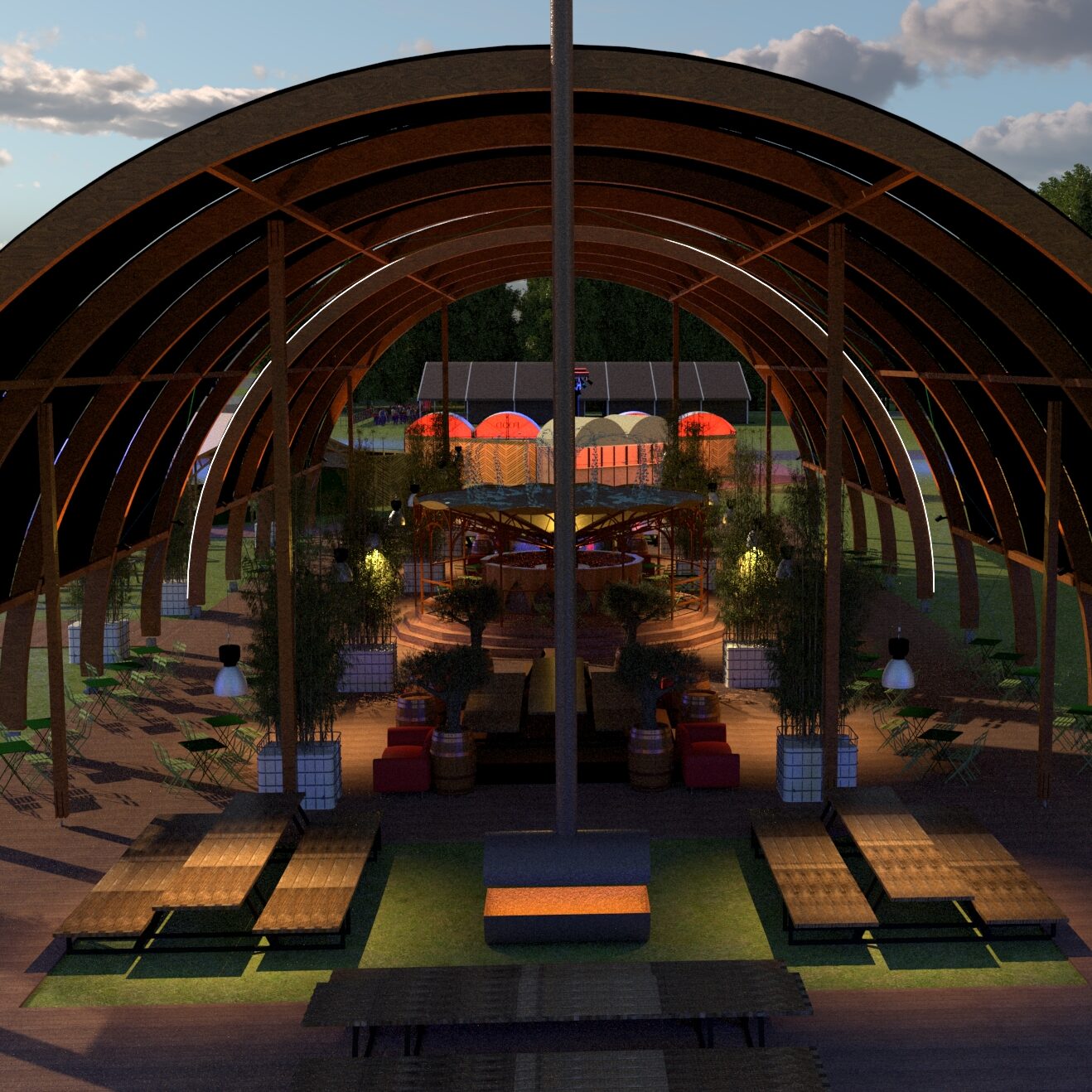 AI is een waardevolle tool voor het creëren van sfeerbeelden en conceptrichtingen. V-Create past AI-visuals toe in het ontwerpproces, maar zet deze altijd om in een technisch realistisch festivaldecor ontwerp. Wij zorgen ervoor dat een AI-concept voldoet aan alle eisen van de vloer, waaronder windbelasting, regenbestendigheid, duurzaamheid, transport en opbouwtijd.