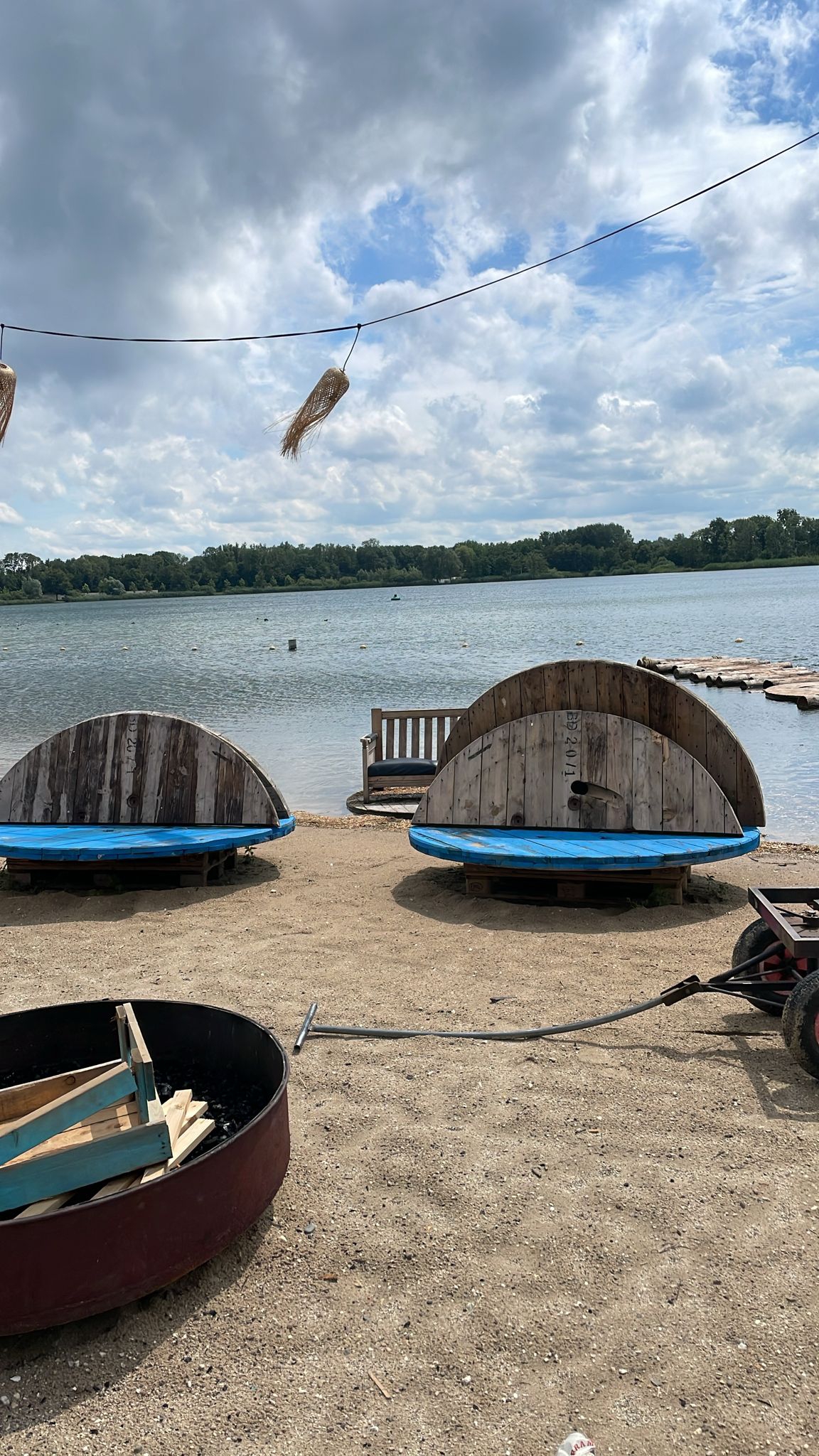 Haspelbladen met een rugleuning in het midden. 2 pallets per set nodig om het op goede hoogte te hebben.