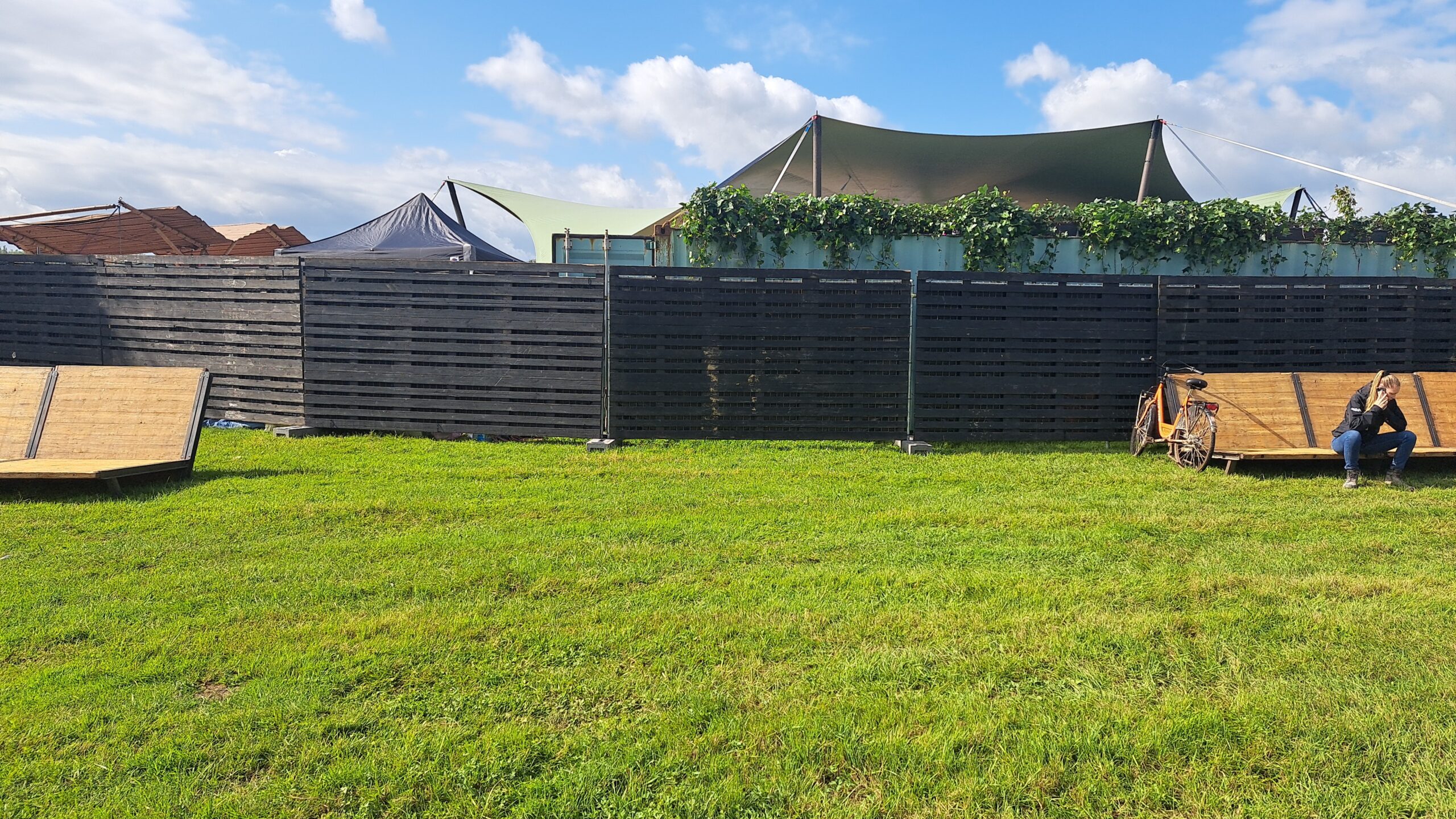 Zwarte Pallet fencing, bedoeld voor op een gezeild bouwhek