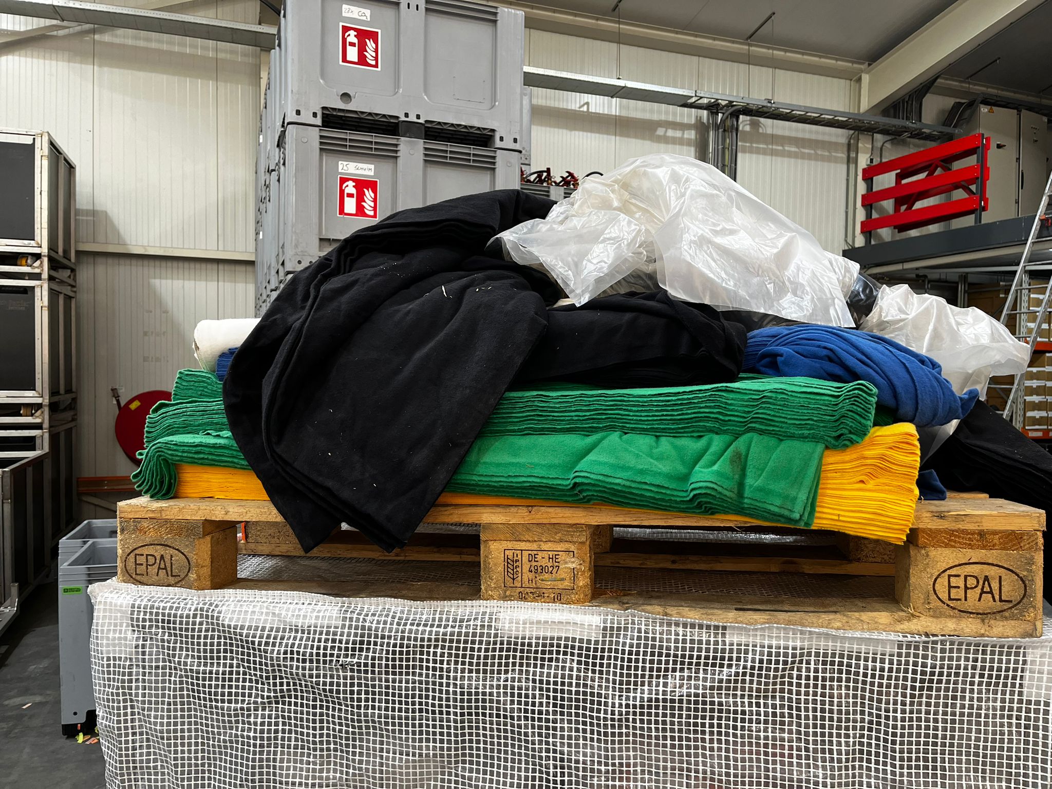 Pallet met molton (groen, geel, blauw, zwart rest. LL)