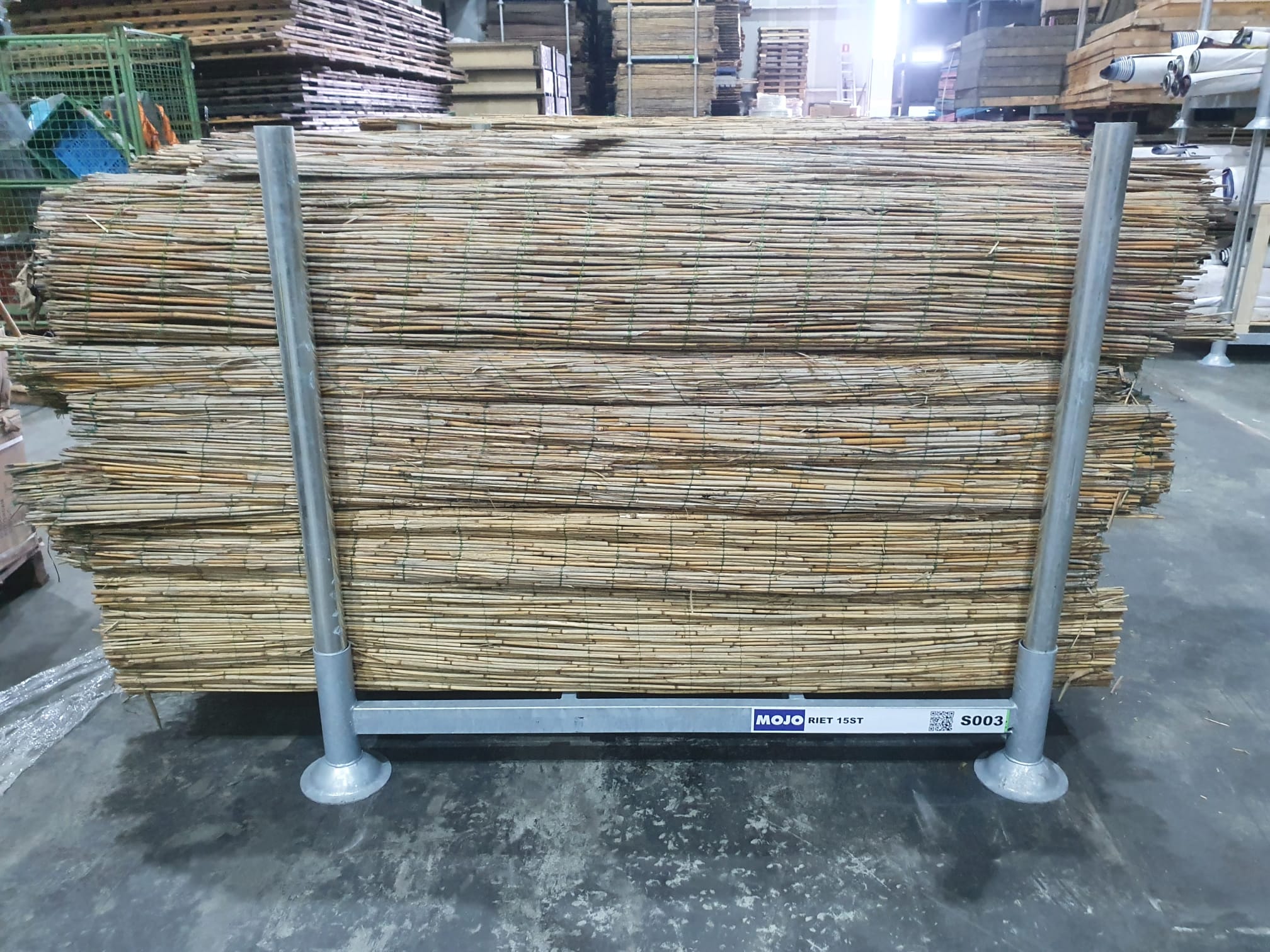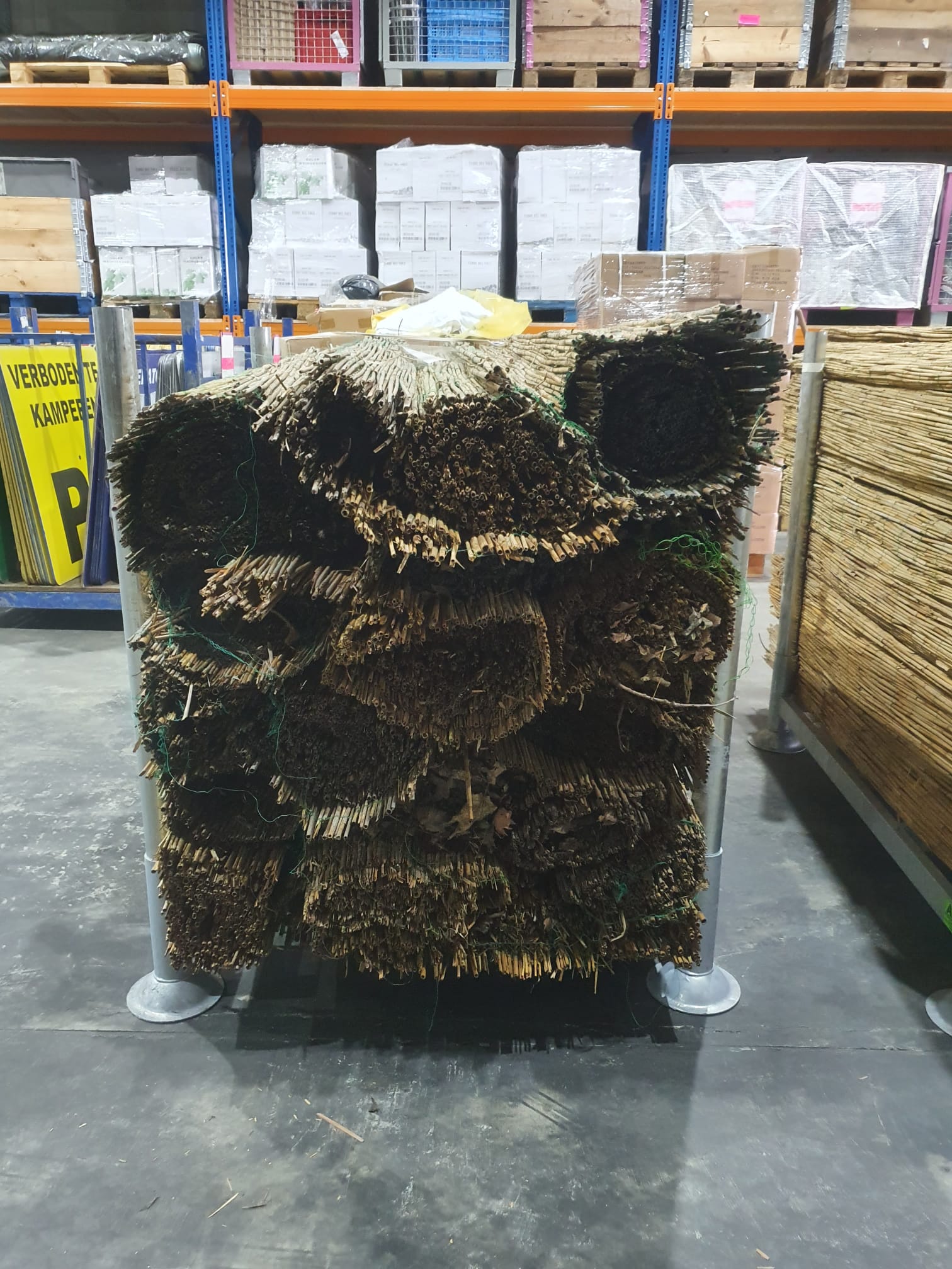 lange matten riet verschillend tussen de 2.5 tm 5 meter lang en evenhoog als een bouwhek, vast te maken aan bouwhekken met tywraps.