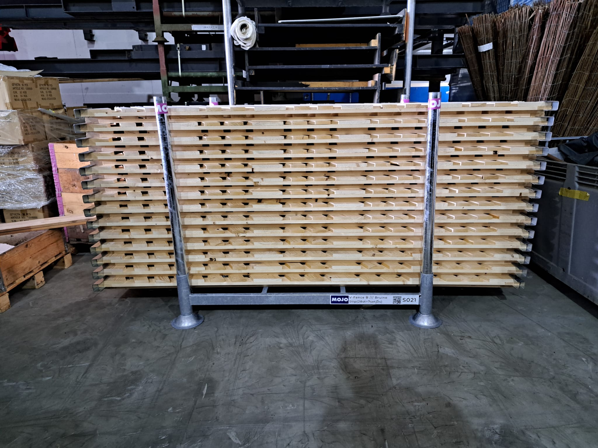 Blanke V-fencing, gemaakt van hout met een schuin patroon. Het patroon gaat links en rechts op waarmee je verschillende leuke patronen kan maken.
