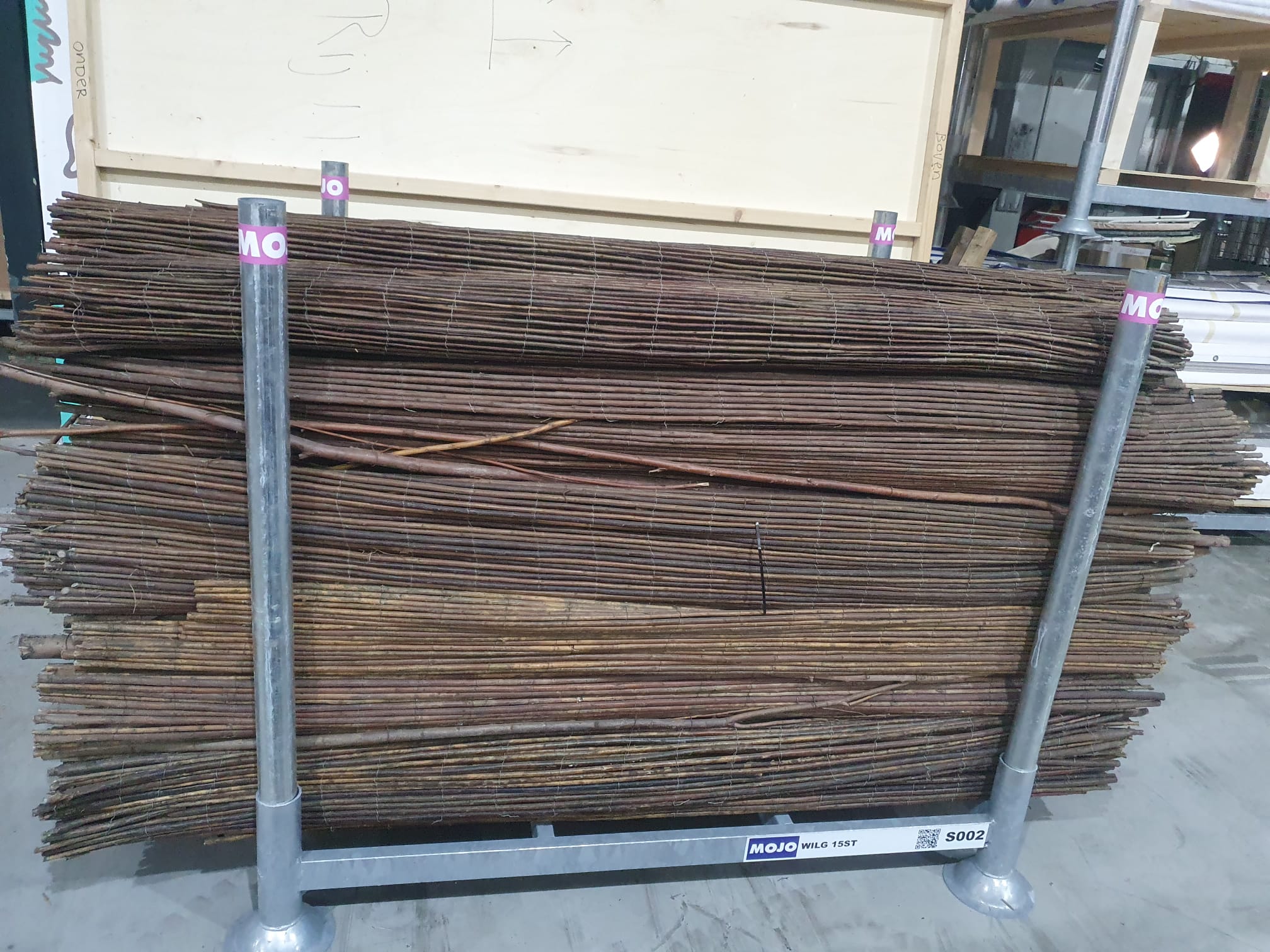 lange matten wilg verschillend tussen de 2.5 tm 5 meter lang en evenhoog als een bouwhek, vast te maken aan bouwhekken met tywraps.